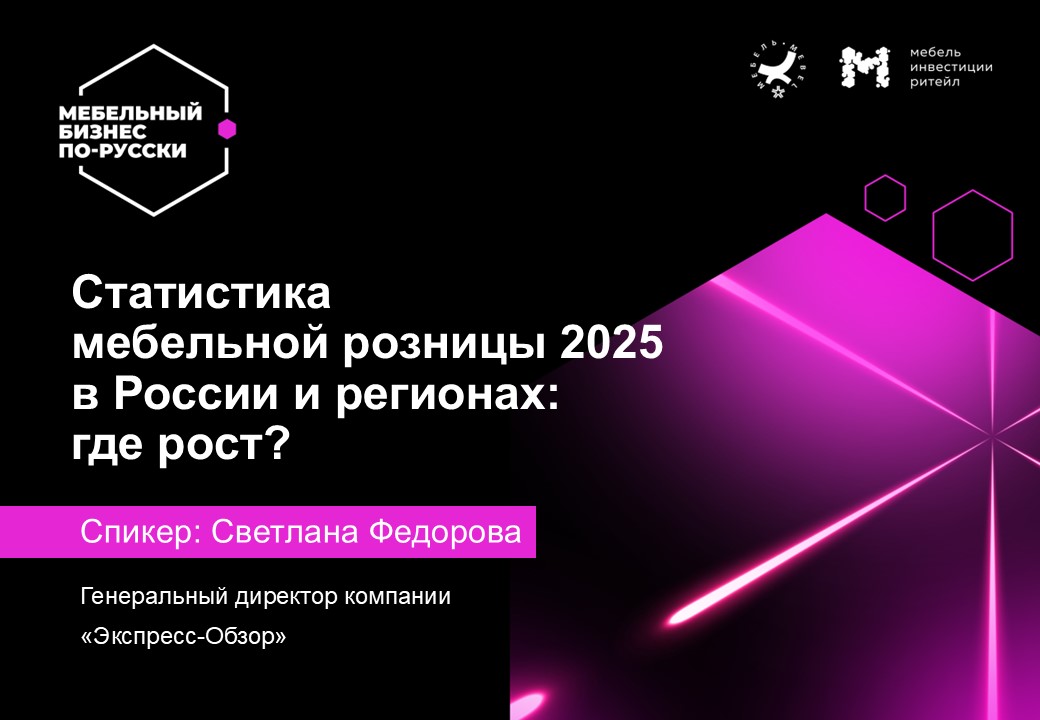 24 ноября 2025 года генеральный деректор компании "Экспресс-Обзор" Светлана Федорова приняла участие в конференции «Мебельный бизнес по-русски 2025. Мебельный рынок схлопнулся. Что сейчас делать нельзя и что придется делать?», которая прошла в рамках выставки "Мебель-2025". Организатором конференции выступила компания "МИР" (Мебель. Инвестиции. Ритейл).