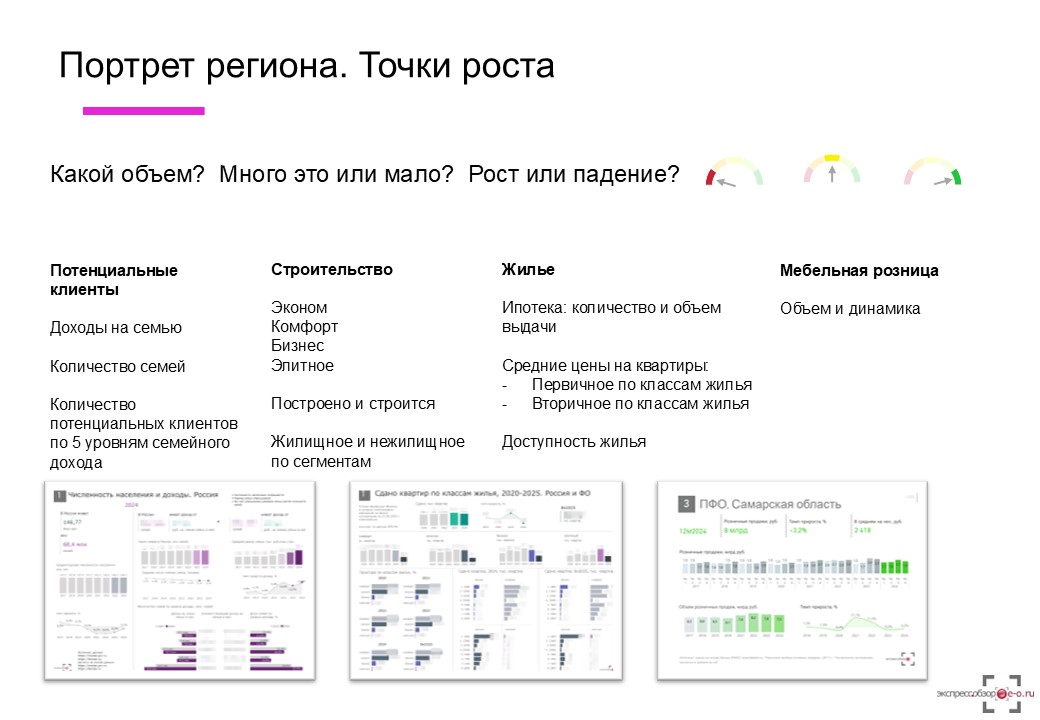 В своем выступлении Светлана ориентировалась на данные исследований мебельного рынка от компании "Экспресс-Обзор": "Производство мебели в России", "Розничные продажи мебели в разрезе регионов", "Рейтинг перспективности регионов для продажи мебели", "Анализ розничных цен на мебель и инфляция", "Жилищное строительство", "Портрет региона. Точки роста".